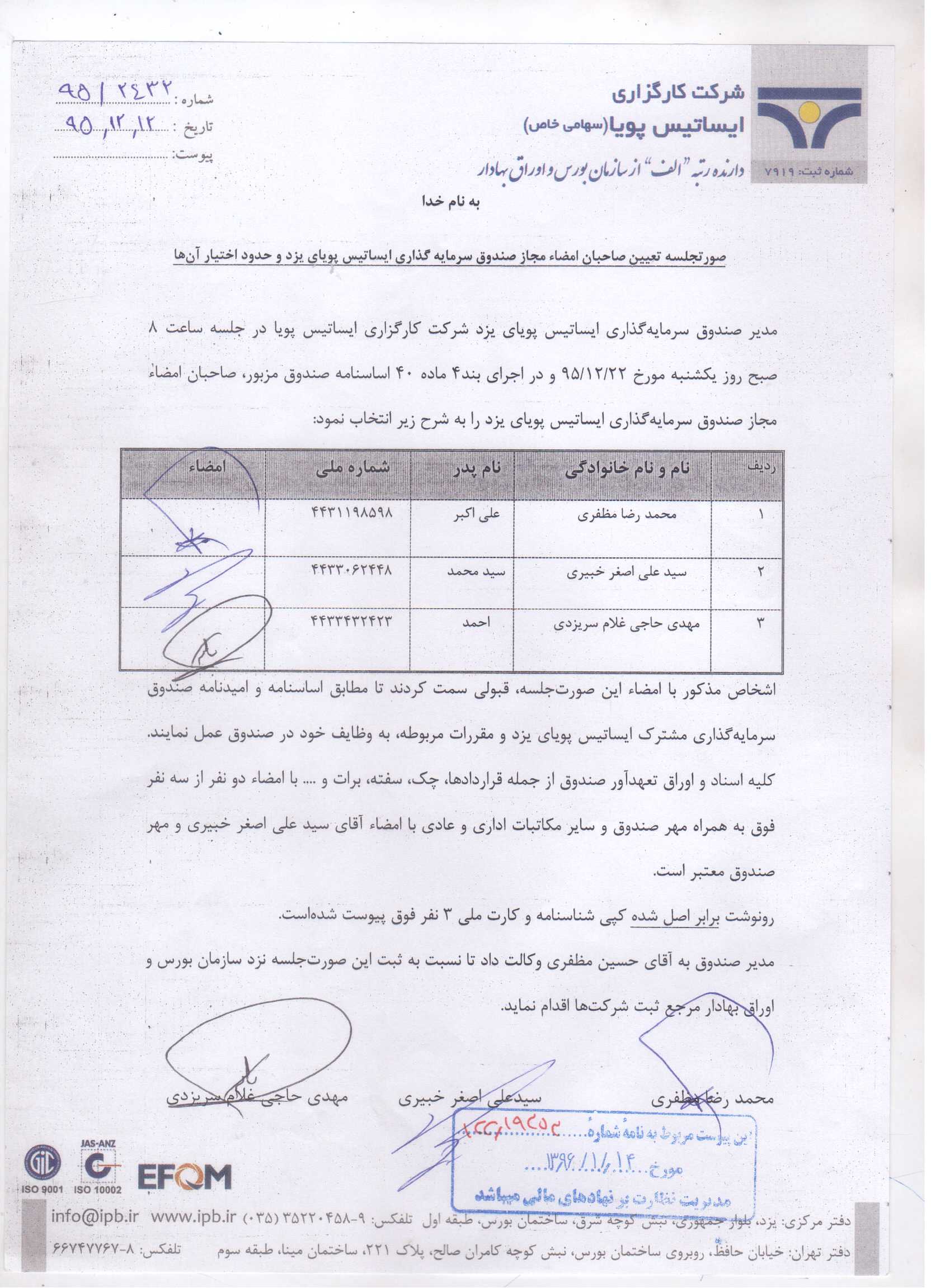 جلسه مجمع موسسين صتدوق سرمايه گذاري مشترك ايساتيس